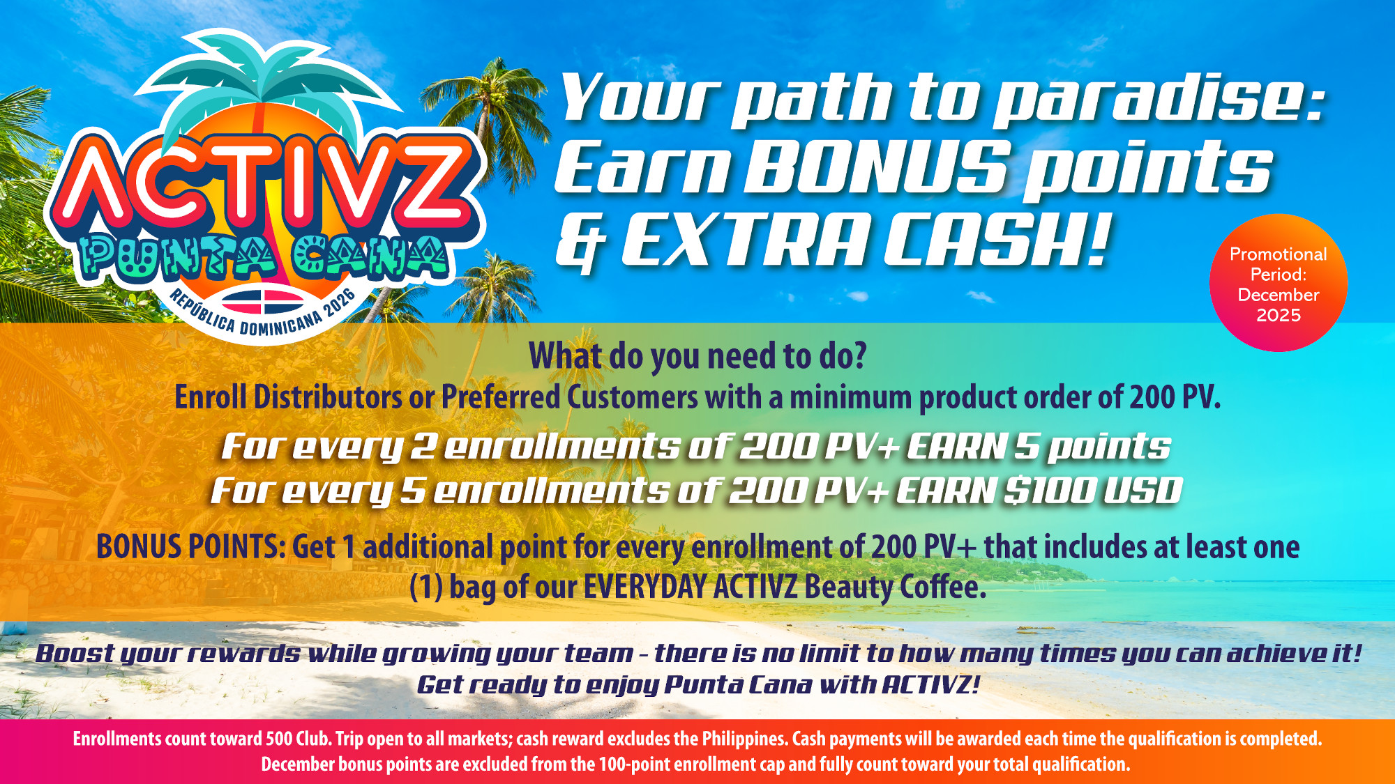 1. Enroll New Distributors or Preferred Customers with a minimum of 100 PV+